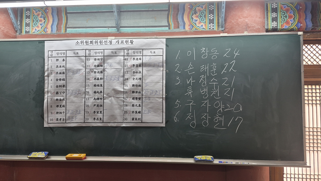 - 투표방법 무기명 비밀투표(기표용구 사용. 성명으로 작성하니 누구의 글씨인지 알 수 있는 단점을 극복)